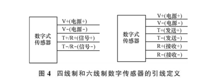 (四根信號線加兩根電源線) 數字傳感器。 四線制數字傳感器和六線制數字傳感器的引線定義如圖4所示。