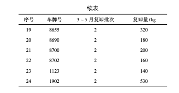 2.主輔比對數據,復卸次數減少,虧損率下降。石腦油是天津石化采購的大宗物料,物資裝備部委托某大型運輸公司承運。我們的卸凈控制指標是,當供方磅單凈重大于我方凈重 90 kg時,要求司機回卸車棧臺復卸。因棧臺的卸料泵功率較低,并且較陳舊,卸料速度較慢,且因棧臺人員顧慮泵空轉,損傷泵體,造成卸料不凈,這是客觀原因。還有主觀原因,部分車輛幾次三番發生復卸現象,并能卸出超過 60 kg 的油料,有故意不卸凈傾向。這些情況承運公司并不知曉。我們通過統計比對數據,統計頻發復卸車輛的情況 ( 見表 2 和表 3) ,通報并敦促運輸公司管理層,加強對承運司機的管理和考核,使司機自覺卸凈。