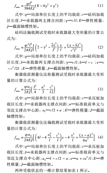 砝碼法稱量測試受載時(shí)承載器最大變形量的計(jì)算公式為:
